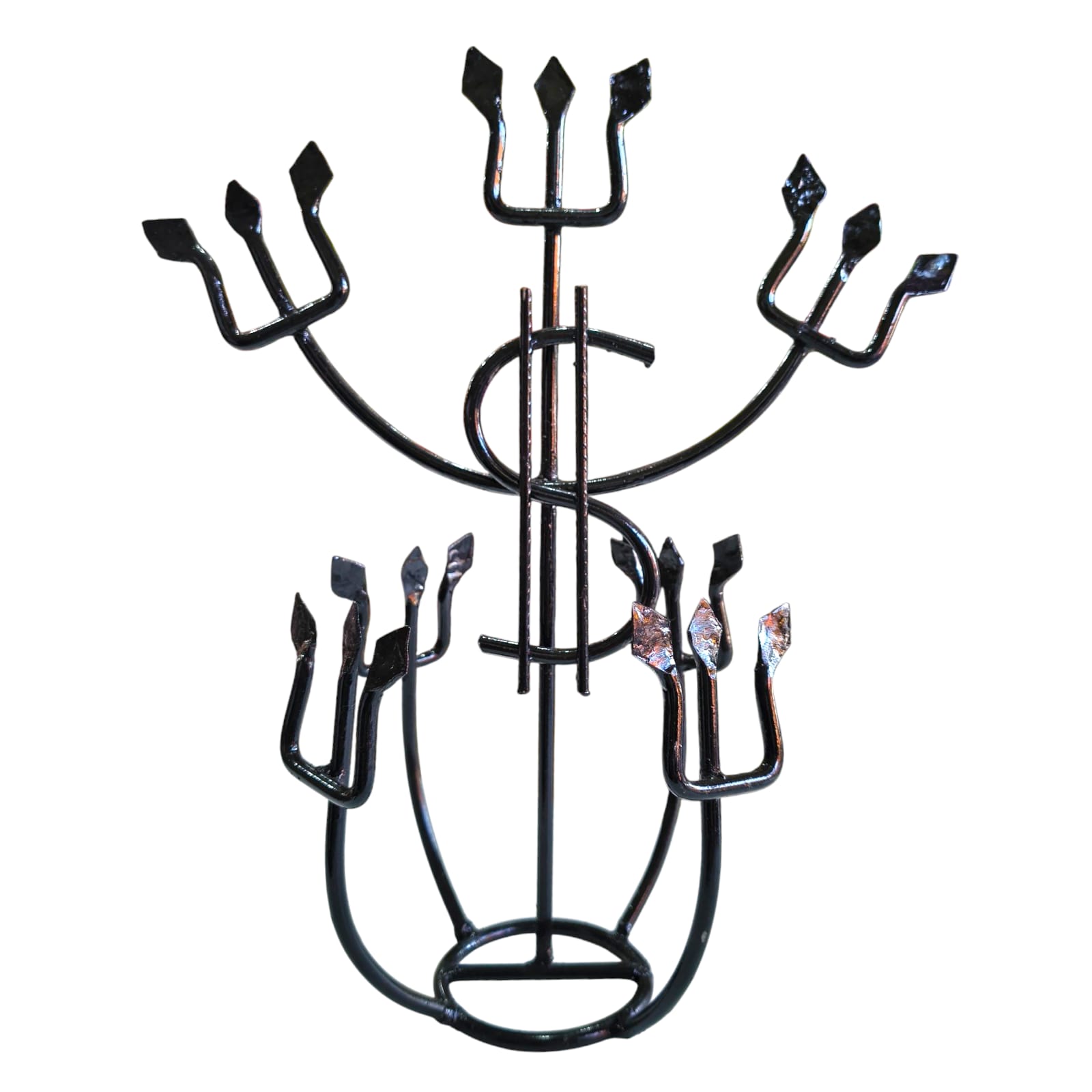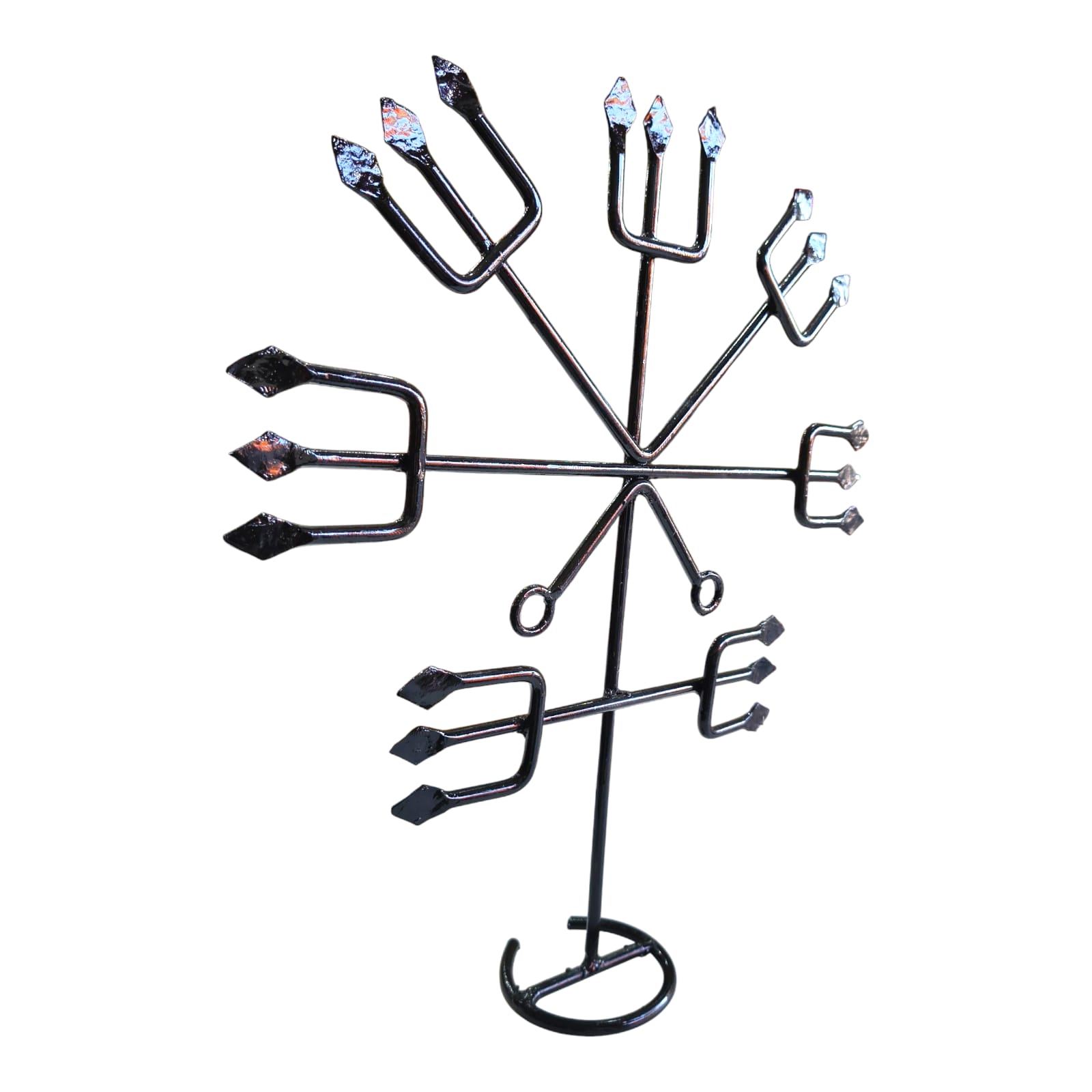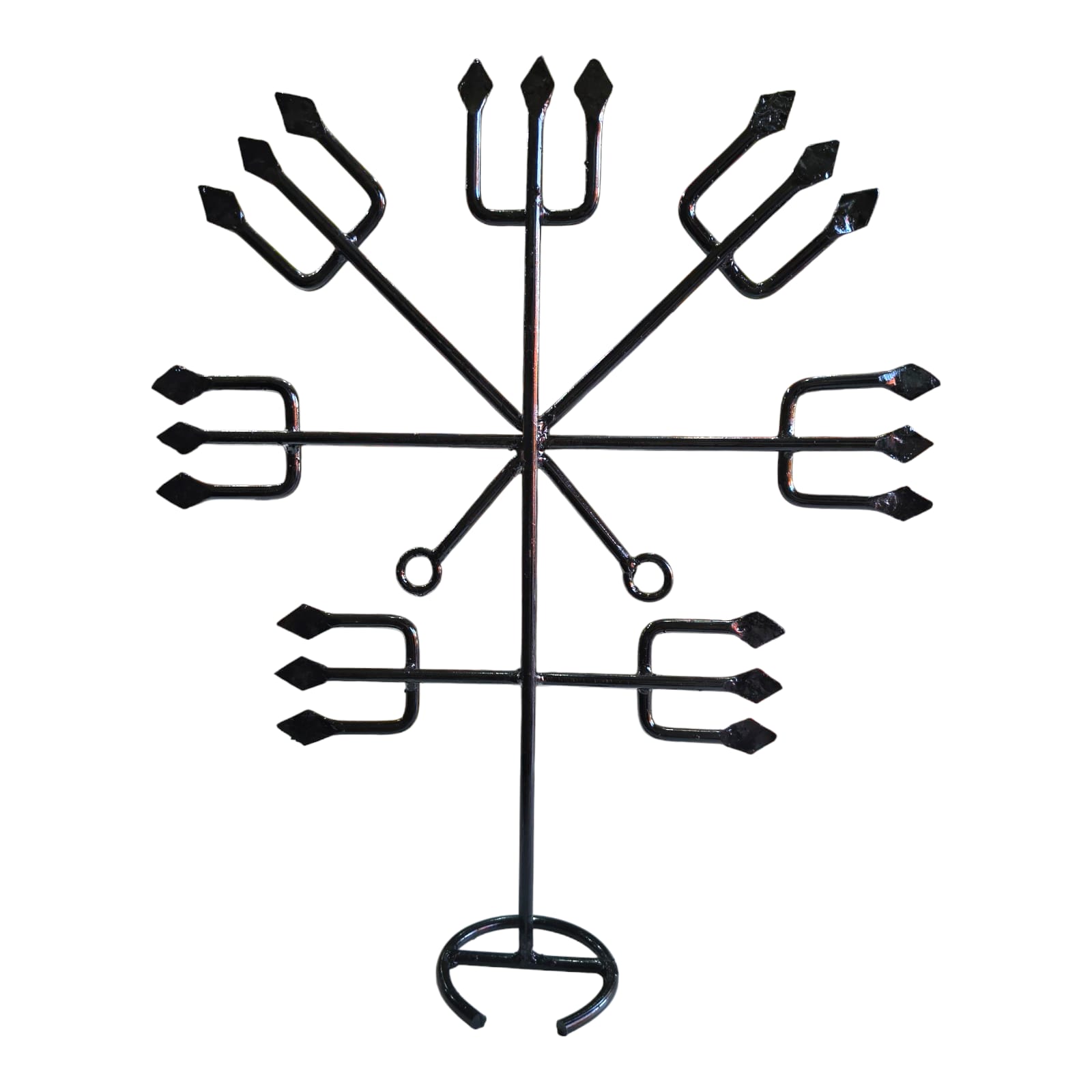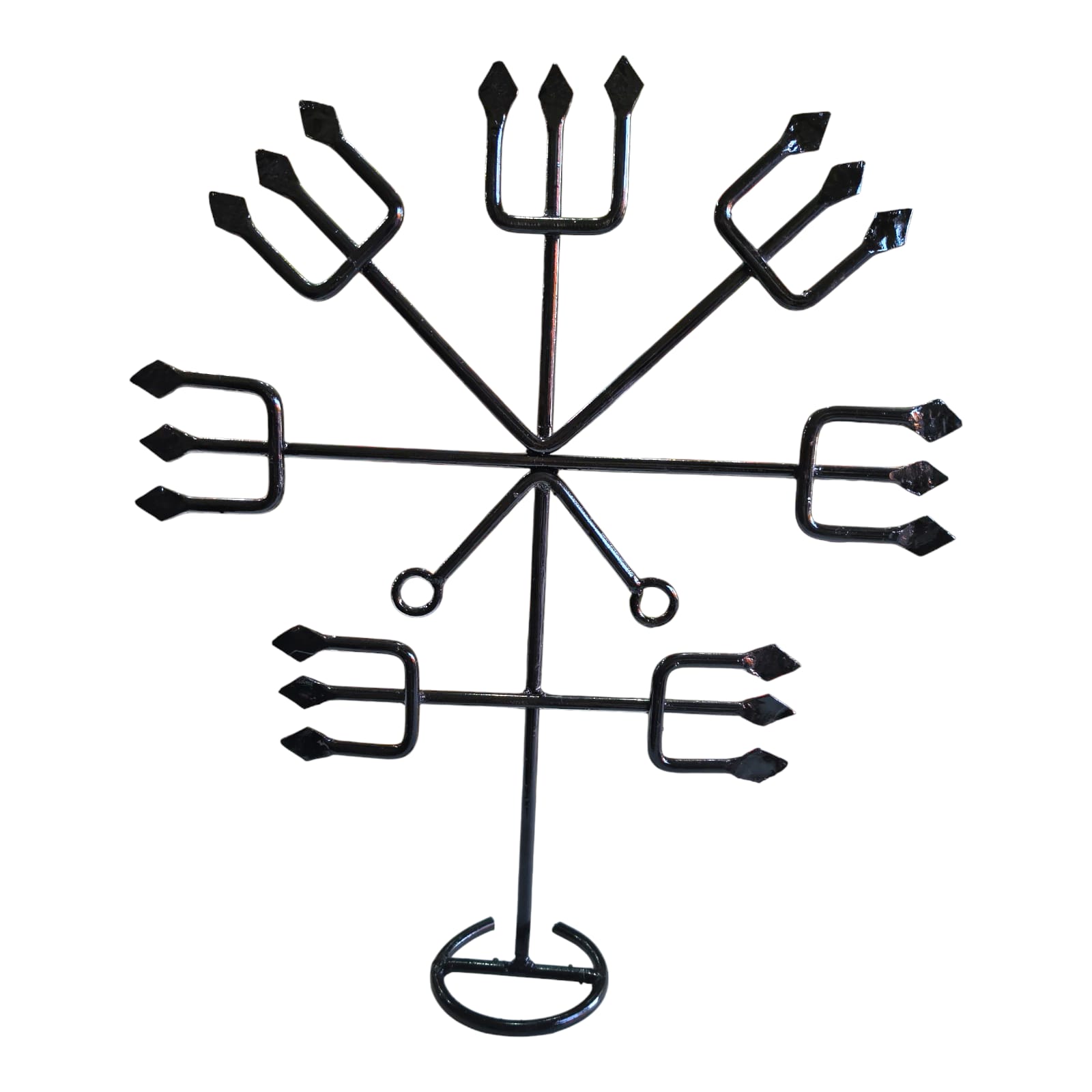 Ferramenta ritualística confeccionada em modelo luxo, com acabamento em preto, ideal para montagem de assentamentos de Exu.