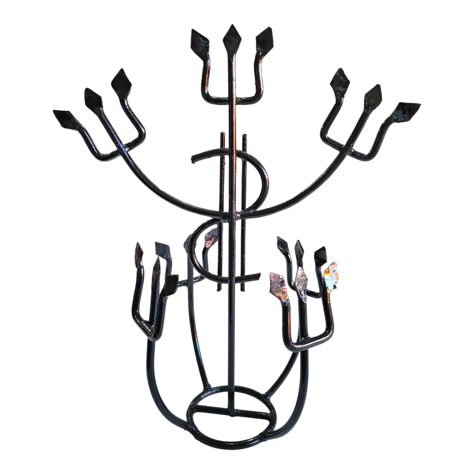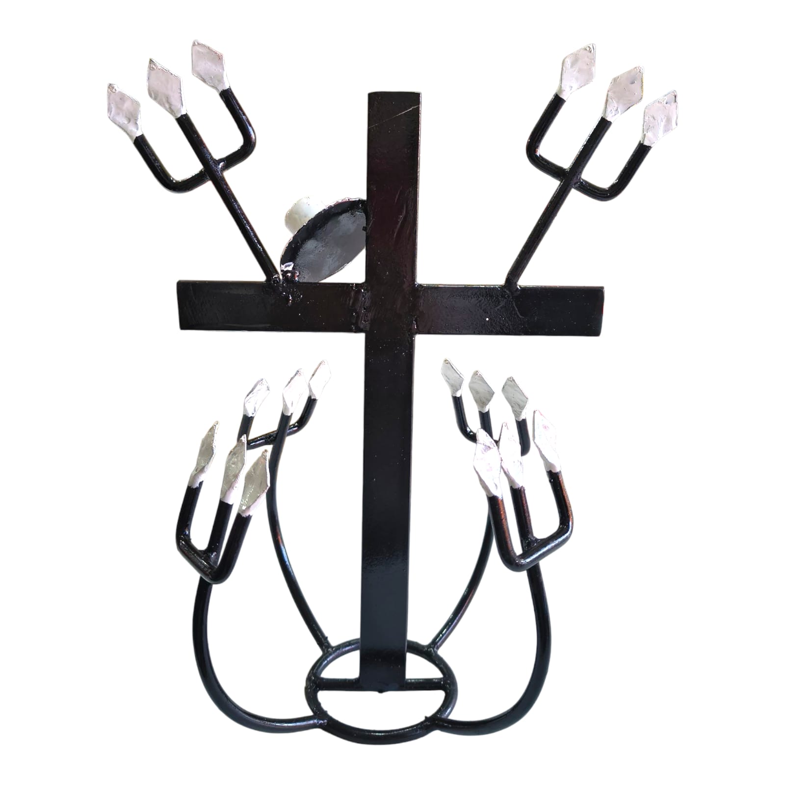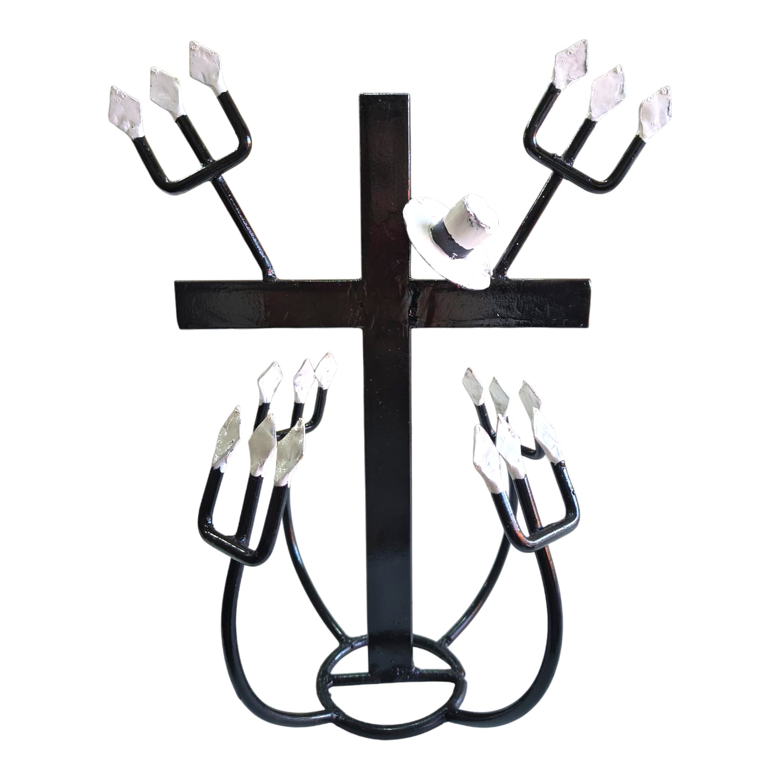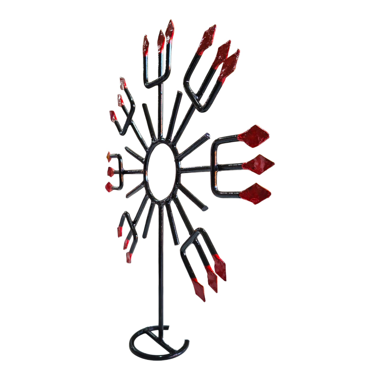 Ferramenta ritualística confeccionada em modelo luxo, com acabamento em preto, ideal para montagem de assentamentos de Exu.