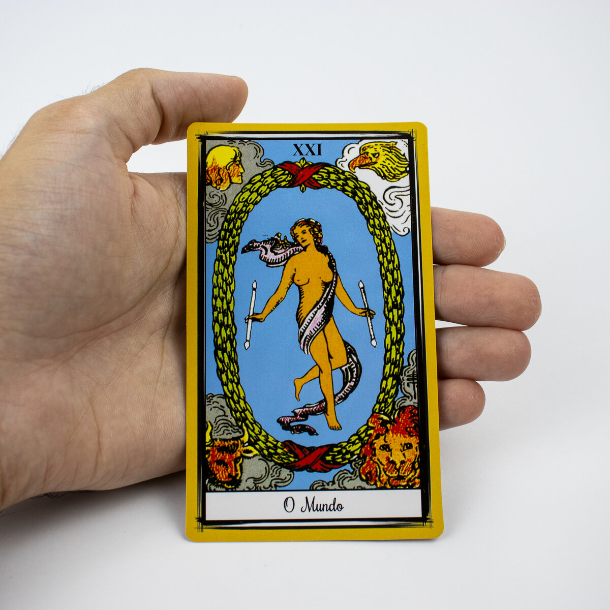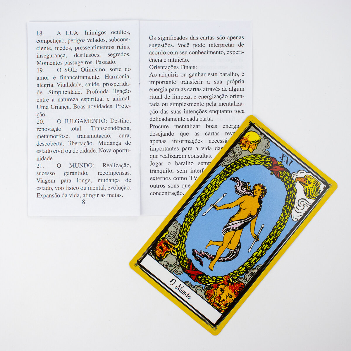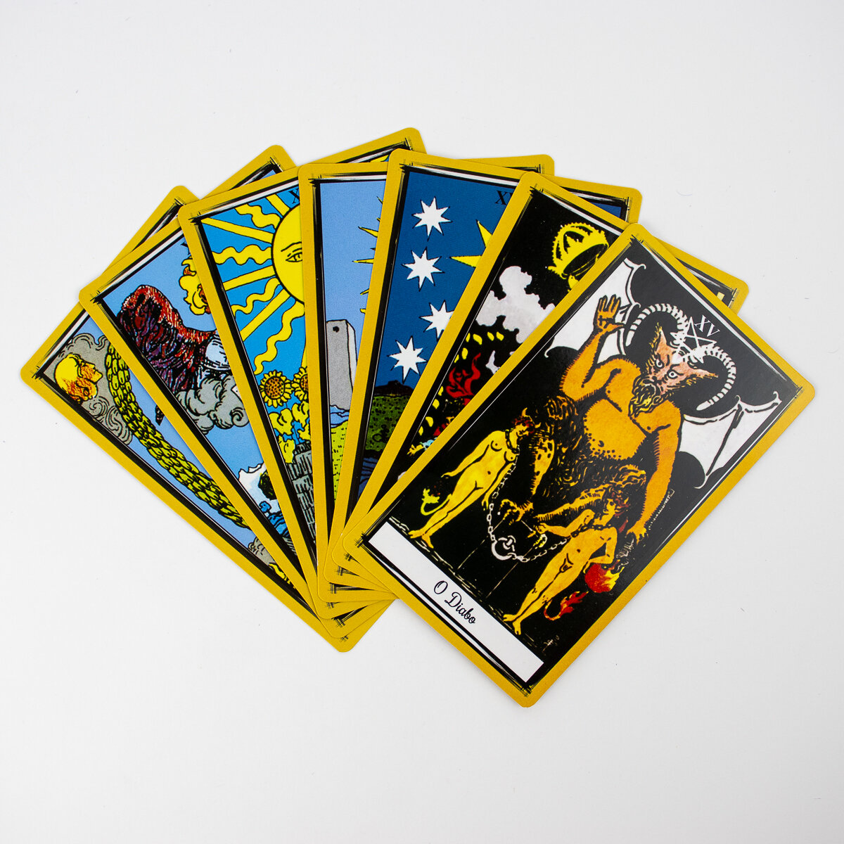 Todas as cartas possuem identificação dos arcanos maiores escritos em português.